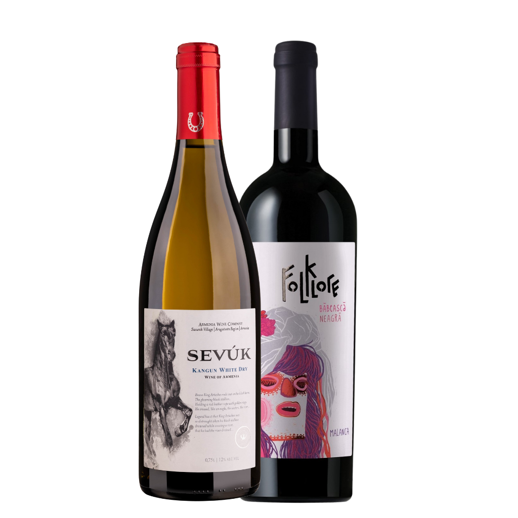 Kit Best Sellers, contendo 1 Vinho Tinto Folklore Babeasca Neagra DOC e 1 Vinho Branco Sevuk Kangun..